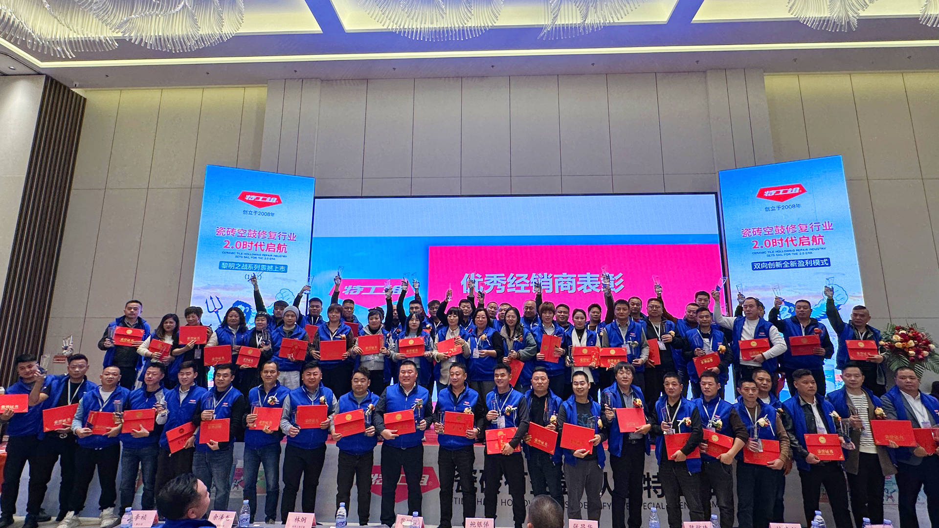 台下各位嘉宾的掌声与支持的呐喊,是对特工组最大的肯定。感谢全体工作人员,因为有你们的汗水,特工组才不断前行,也感谢同行业工作人员,因为有你们的追赶,才让我们不敢懈怠,更责无旁贷的披荆斩棘,正是你们的不断追赶与模仿,才让我们截止2025年6月以来,大大小小的瓷砖空鼓修复项目培训,累计高达百场,学员数量已高达数万名,未来的我们将更为惊艳。